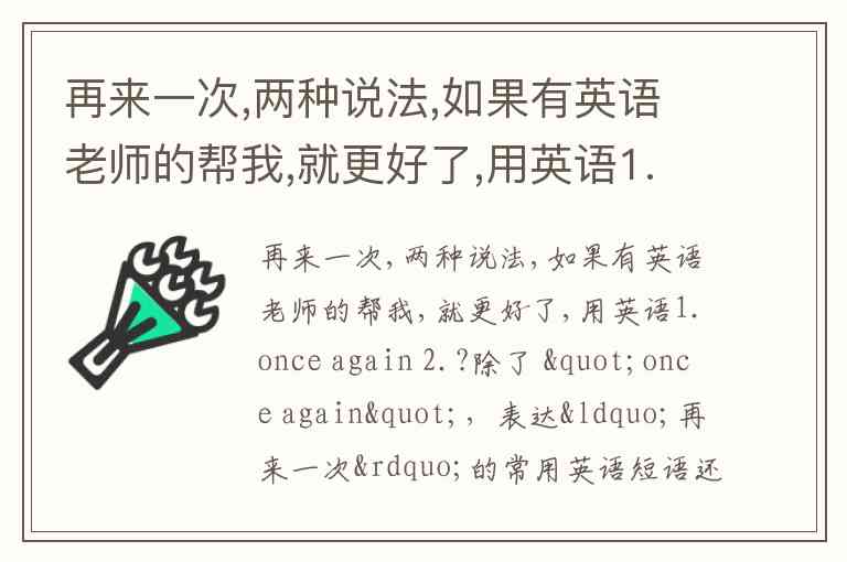 再来一次,两种说法,如果有英语老师的帮我,就更好了,用英语1.once again 2.?