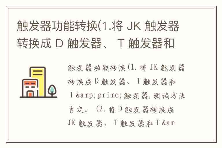 触发器功能转换的核心是通过组合逻辑电路将原触发器输入与目标触发器输入关联,使原触发器呈现目标触发器的状态特性。上述转换推导均符合逻辑: