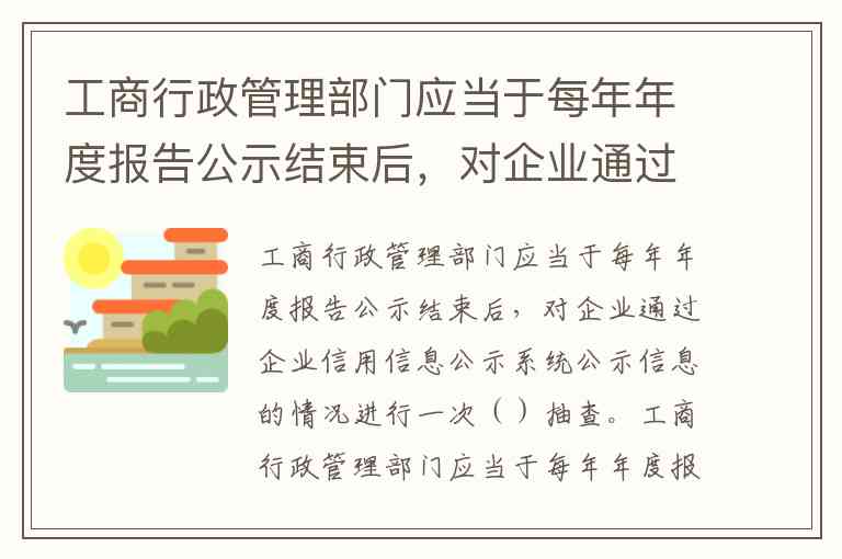 工商行政管理部门应当于每年年度报告公示结束后,对企业通过企业信用信息公示系统公示信息的情况进行一次()抽查。