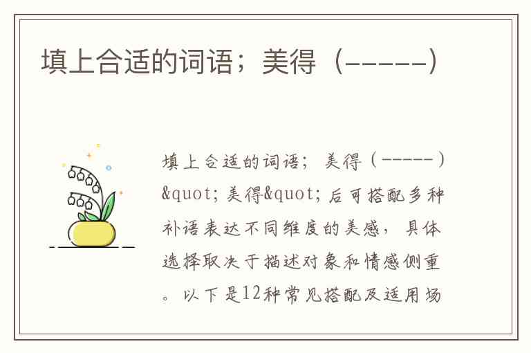 "美得"后可搭配多种补语表达不同维度的美感,具体选择取决于描述对象和情感侧重。以下是12种常见搭配及适用场景分析: