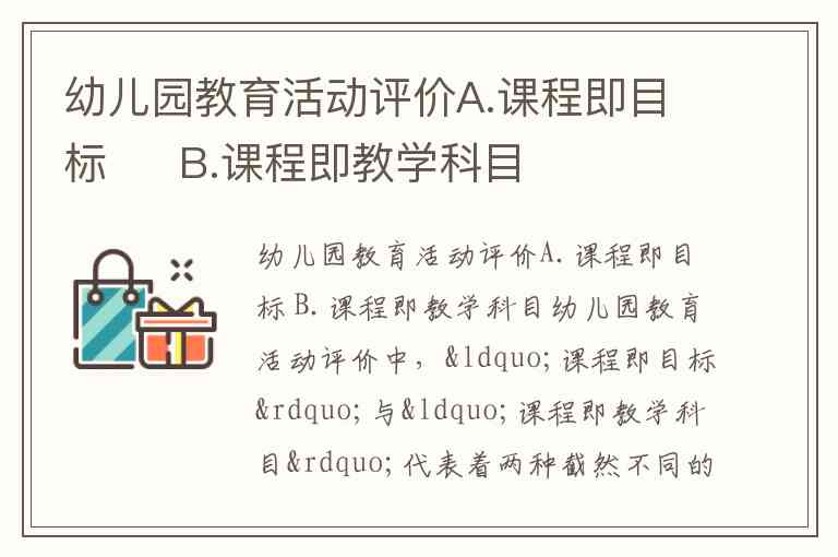 幼儿园教育活动评价A.课程即目标 B.课程即教学科目