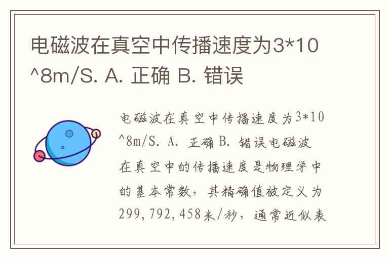 电磁波在真空中传播速度为3*10^8m/S. A. 正确 B. 错误