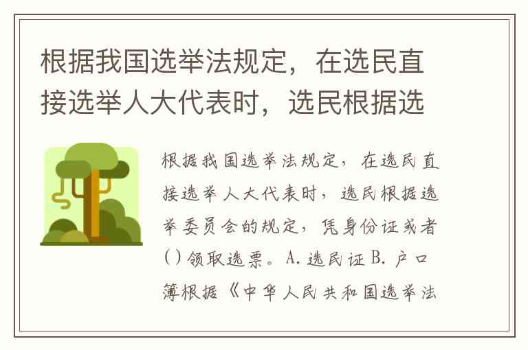 根据我国选举法规定,在选民直接选举人大代表时,选民根据选举委员会的规定,凭身份证或者( )领取选票。A.选民证 B.户口簿