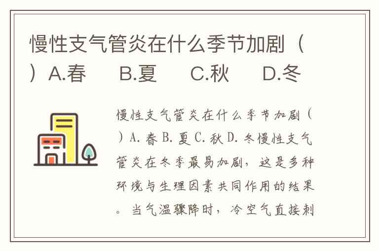 慢性支气管炎在什么季节加剧()A.春 B.夏 C.秋 D.冬