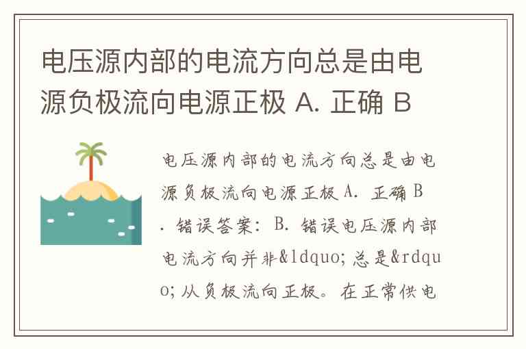 电压源内部的电流方向总是由电源负极流向电源正极 A. 正确 B. 错误