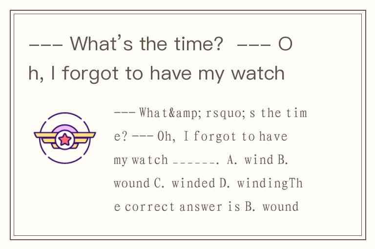 --- What’s the time? --- Oh, I forgot to have my watch ______. A. wind B. wound C. winded D. winding