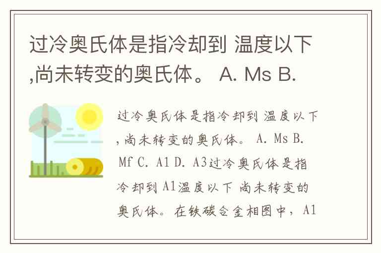 过冷奥氏体是指冷却到 温度以下,尚未转变的奥氏体。 A. Ms B. Mf C. A1 D. A3