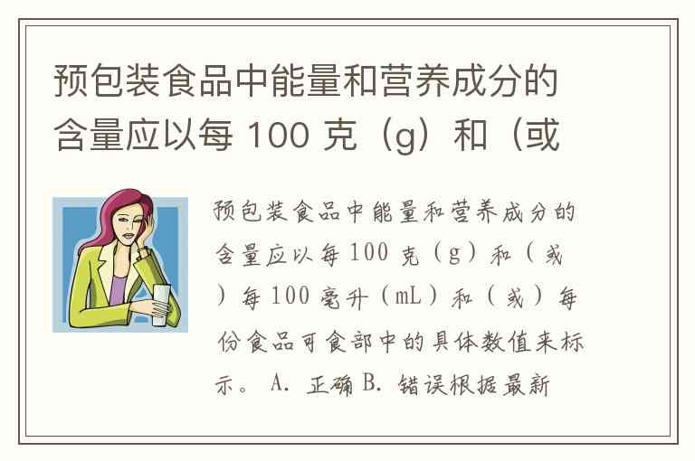 预包装食品中能量和营养成分的含量应以每 100 克(g)和(或)每 100 毫升(mL)和(或)每 份食品可食部中的具体数值来标示。 A. 正确 B. 错误