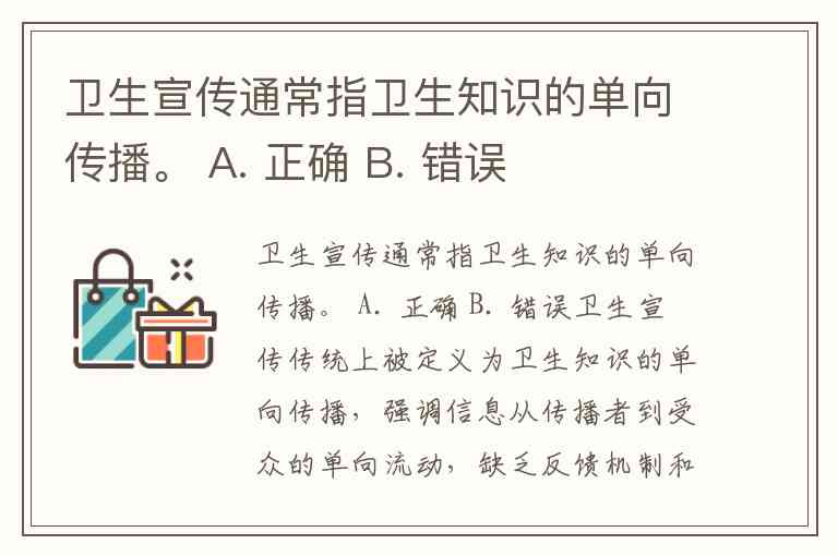 卫生宣传通常指卫生知识的单向传播。 A. 正确 B. 错误