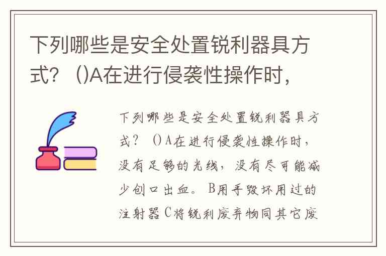 下列哪些是安全处置锐利器具方式? ()A在进行侵袭性操作时,没有足够的光线,没有尽可能减少创口出血。 B用手毁坏用过的注射器 C将锐利废弃物同其它废弃物混在一起 D不把用过的器具传递给别人