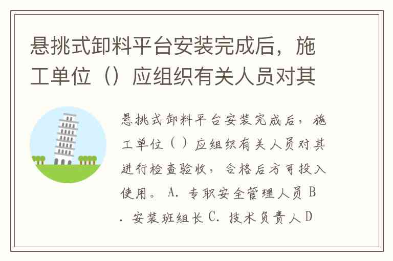 悬挑式卸料平台安装完成后,施工单位()应组织有关人员对其进行检查验收,合格后方可投入使用。 A. 专职安全管理人员 B. 安装班组长 C. 技术负责人 D. 机械设备管理人员