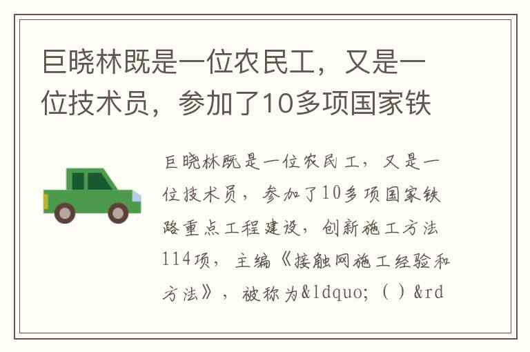 作为“改革先锋”荣誉称号获得者,巨晓林参与了大秦线、京沪高铁等10多项国家重点工程,创造直接或间接经济效益2000多万元。他的成长轨迹——从记手电笔记的学徒到国家级技能大师工作室带头人,从肩扛电线的体力劳动者到改写施工标准的技术权威——完美诠释了“劳动最光荣、知识最崇高”的时代价值观。当工友们亲切地称他“小巨人”时,这个称谓不仅是对他技术贡献的肯定,更是对中国农民工群体知识化转型的生动隐喻。