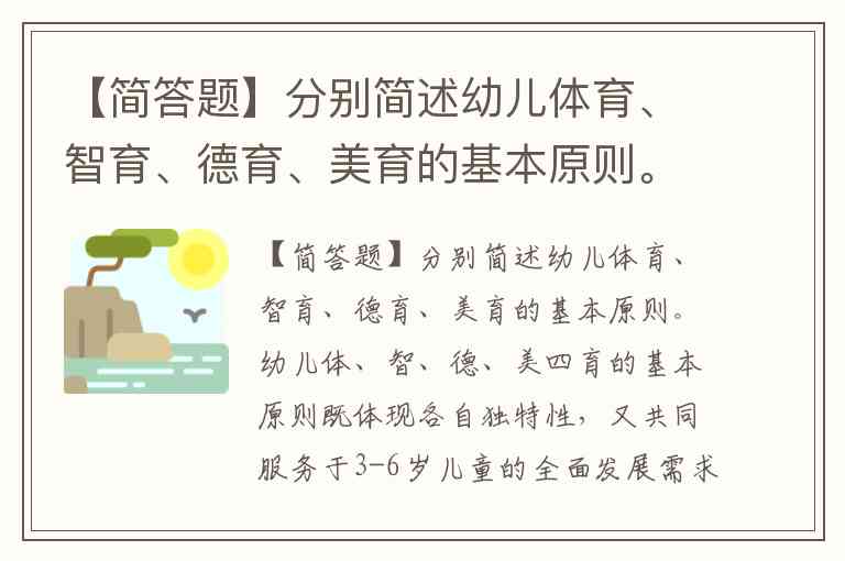 【简答题】分别简述幼儿体育、智育、德育、美育的基本原则。