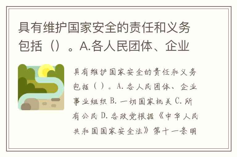 具有维护国家安全的责任和义务包括()。A.各人民团体、企业事业组织 B.一切国家机关 C.所有公民 D.各政党