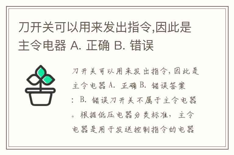 刀开关可以用来发出指令,因此是主令电器 A. 正确 B. 错误
