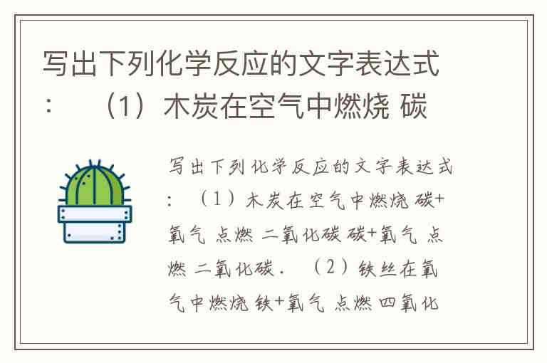 写出下列化学反应的文字表达式: (1)木炭在空气中燃烧 碳+氧气 点燃 二氧化碳 碳+氧气 点燃 二氧化碳 . (2)铁丝在氧气中燃烧 铁+氧气 点燃 四氧化三铁 铁+氧气 点燃 四氧化三铁 . (3)二氧化碳与水发生反应______. (4)氢气燃烧时发生的反应 氢气+氧气 点燃 水 氢气+氧气 点燃 水 .