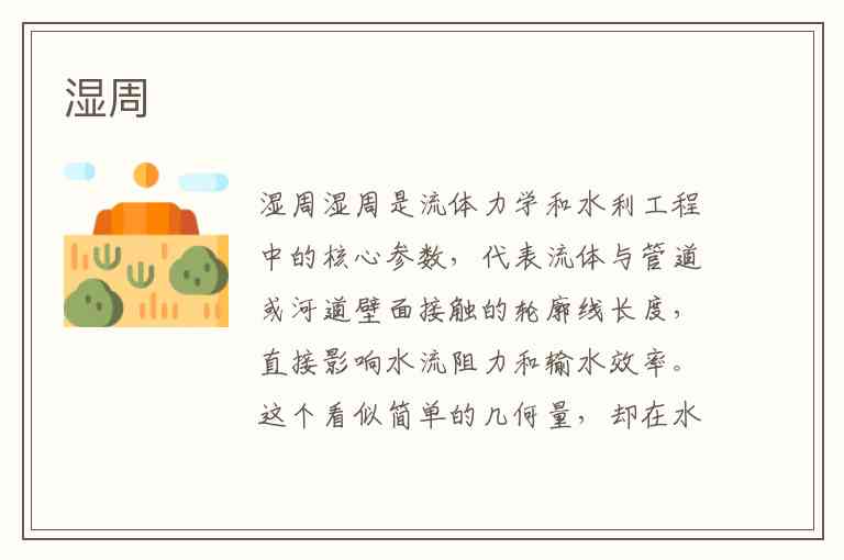 湿周是流体力学和水利工程中的核心参数,代表流体与管道或河道壁面接触的轮廓线长度,直接影响水流阻力和输水效率。这个看似简单的几何量,却在水利工程设计、生态流量计算等领域发挥着关键作用。