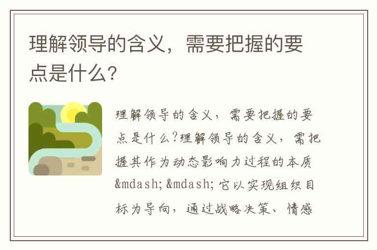 理解领导的含义,需要把握的要点是什么?