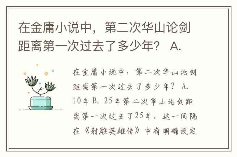 在金庸小说中,第二次华山论剑距离第一次过去了多少年? A. 10年 B. 25年