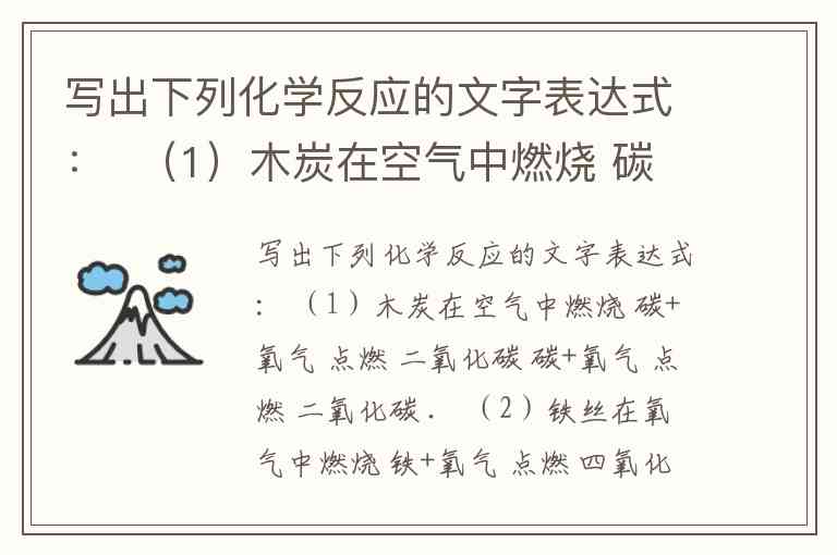 (1)木炭在空气中燃烧时,碳与氧气在点燃条件下发生反应生成二氧化碳,文字表达式为:碳+氧气二氧化碳。