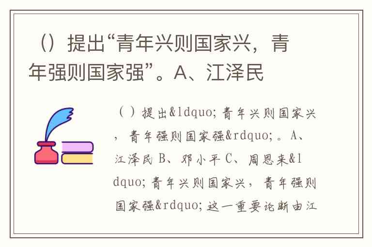 ()提出“青年兴则国家兴,青年强则国家强”。A、江泽民 B、邓小平 C、周恩来