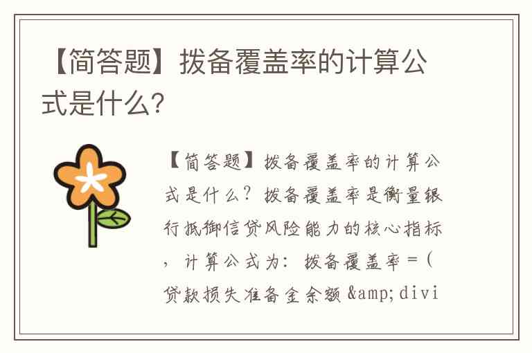 【简答题】拨备覆盖率的计算公式是什么?