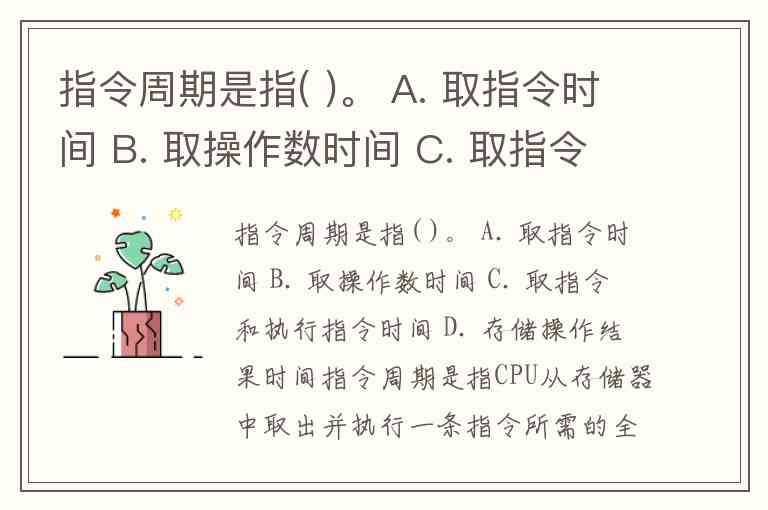 指令周期是指( )。 A. 取指令时间 B. 取操作数时间 C. 取指令和执行指令时间 D. 存储操作结果时间