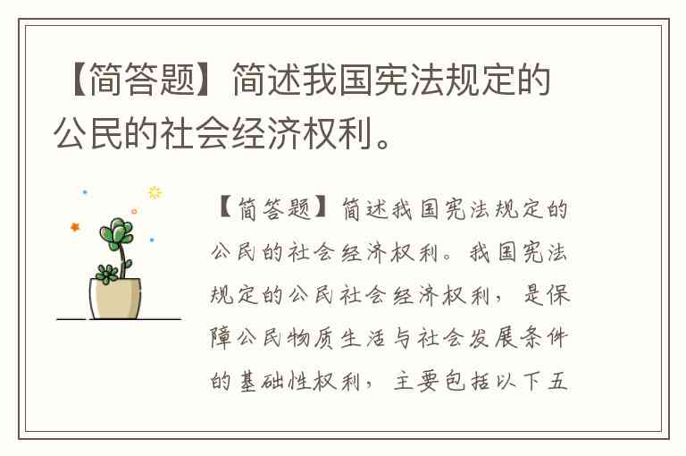 【简答题】简述我国宪法规定的公民的社会经济权利。