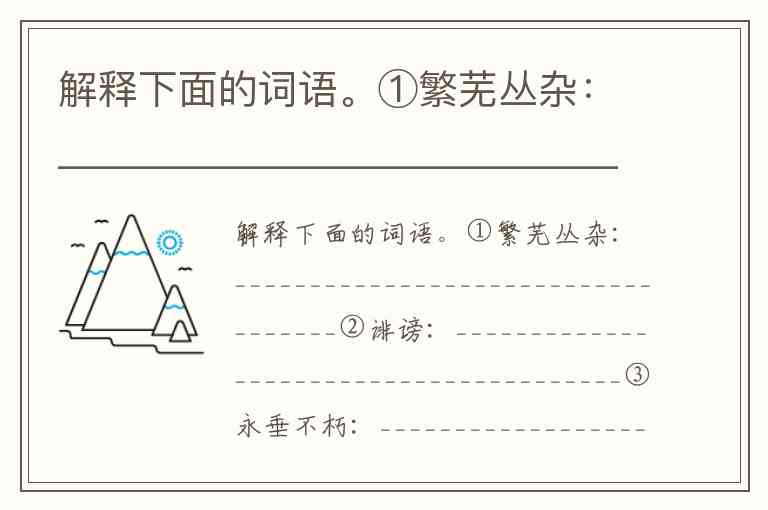 解释下面的词语。①繁芜丛杂:___________________________________②诽谤:_______________________________________③永垂不朽:___________________________________