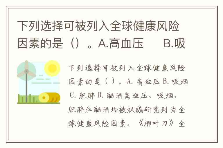 下列选择可被列入全球健康风险因素的是()。A.高血压 B.吸烟 C.肥胖 D.酗酒