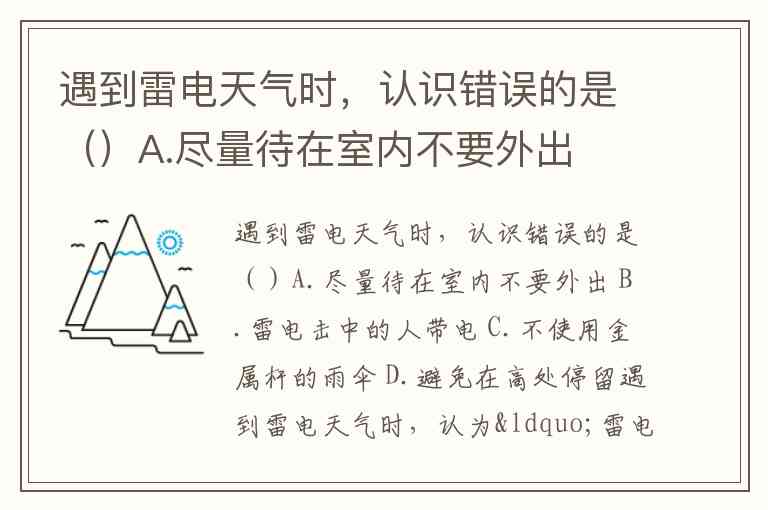 遇到雷电天气时,认识错误的是()A.尽量待在室内不要外出 B.雷电击中的人带电 C.不使用金属杆的雨伞 D.避免在高处停留