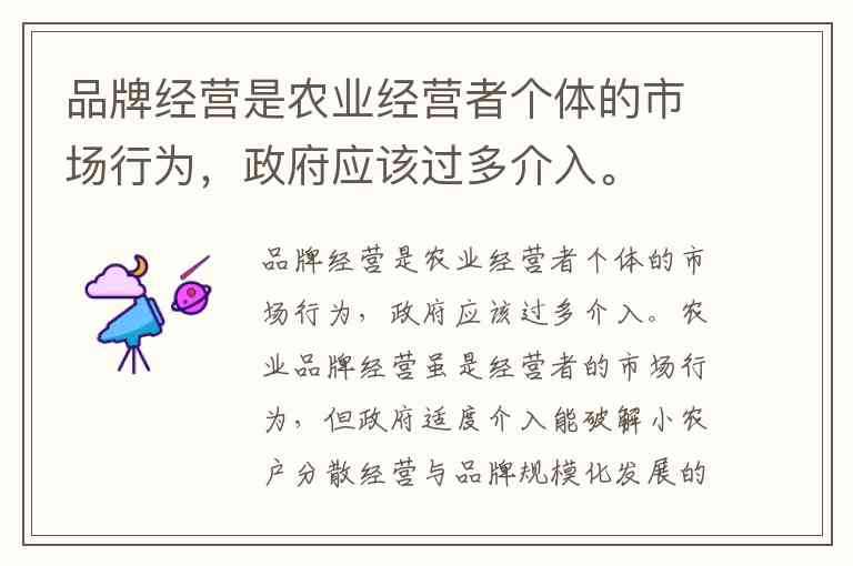 品牌经营是农业经营者个体的市场行为,政府应该过多介入。