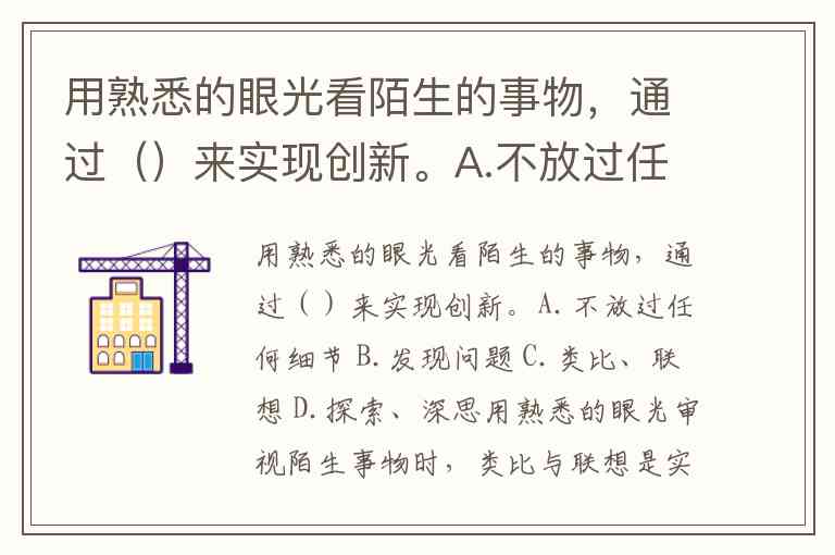 用熟悉的眼光看陌生的事物,通过()来实现创新。A.不放过任何细节 B.发现问题 C.类比、联想 D.探索、深思