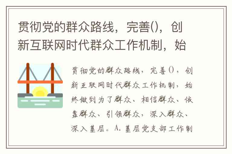 贯彻党的群众路线,完善(),创新互联网时代群众工作机制,始终做到为了群众、相信群众、依靠群众、引领群众,深入群众、深入基层。A.基层党支部工作制度 B.党员、干部联系群众制度 C.群团工作制度