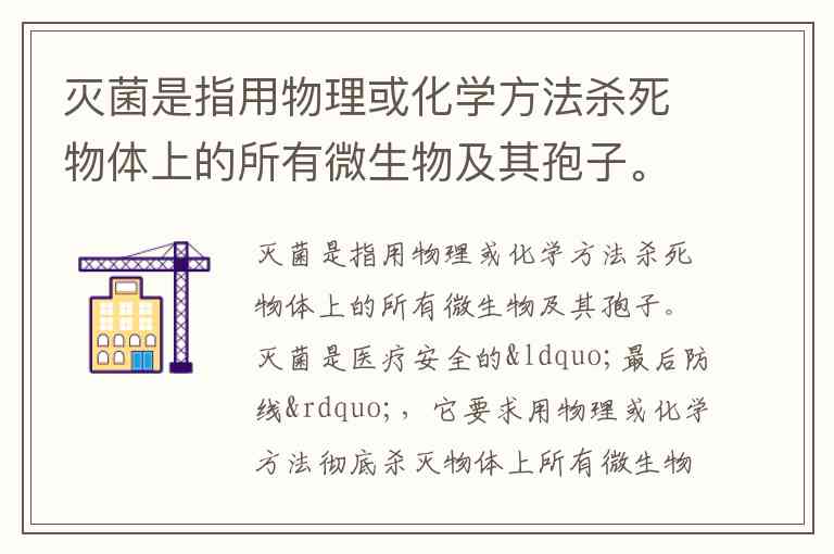 灭菌是指用物理或化学方法杀死物体上的所有微生物及其孢子。