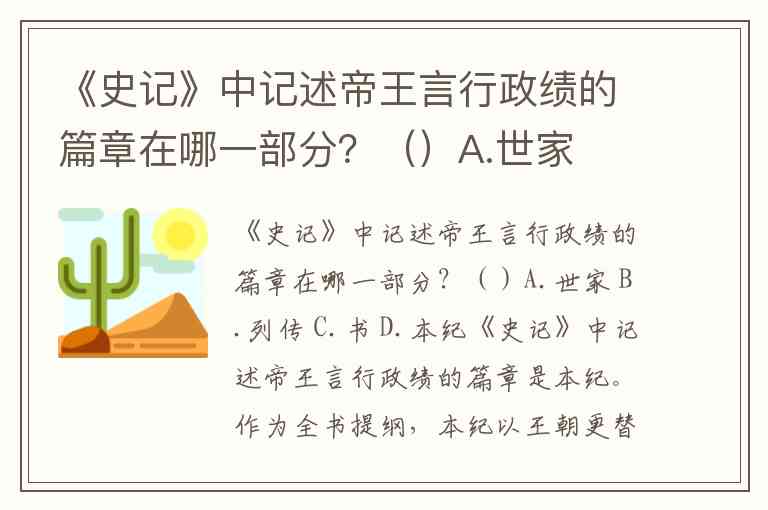 《史记》中记述帝王言行政绩的篇章在哪一部分?()A.世家 B.列传 C.书 D.本纪