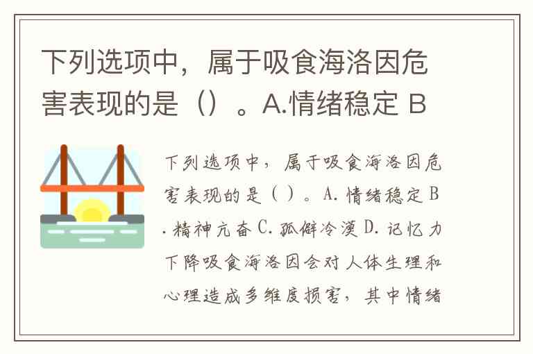 尽管现有资料未直接将“记忆力下降”列为海洛因的核心症状,但长期滥用可通过多种途径损害认知能力: