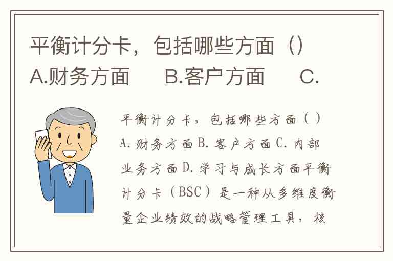 平衡计分卡,包括哪些方面()A.财务方面 B.客户方面 C.内部业务方面 D.学习与成长方面