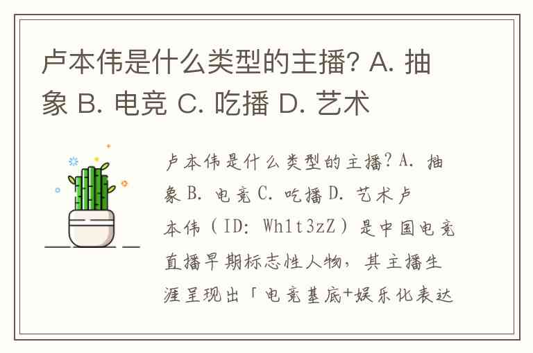 卢本伟是什么类型的主播? A. 抽象 B. 电竞 C. 吃播 D. 艺术