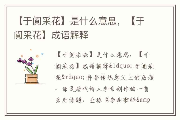 【于阗采花】是什么意思,【于阗采花】成语解释