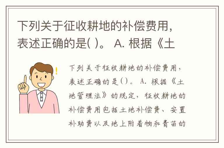根据《土地管理法》及最新政策,征收耕地的补偿费用构成和标准需严格遵循法律规定。正确选项为A和C,具体分析如下: