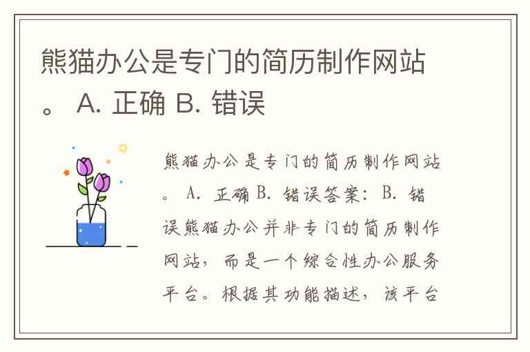 熊猫办公是专门的简历制作网站。 A. 正确 B. 错误