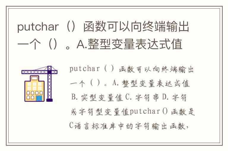 putchar()函数可以向终端输出一个()。A.整型变量表达式值 B.实型变量值 C.字符串 D.字符或字符型变量值