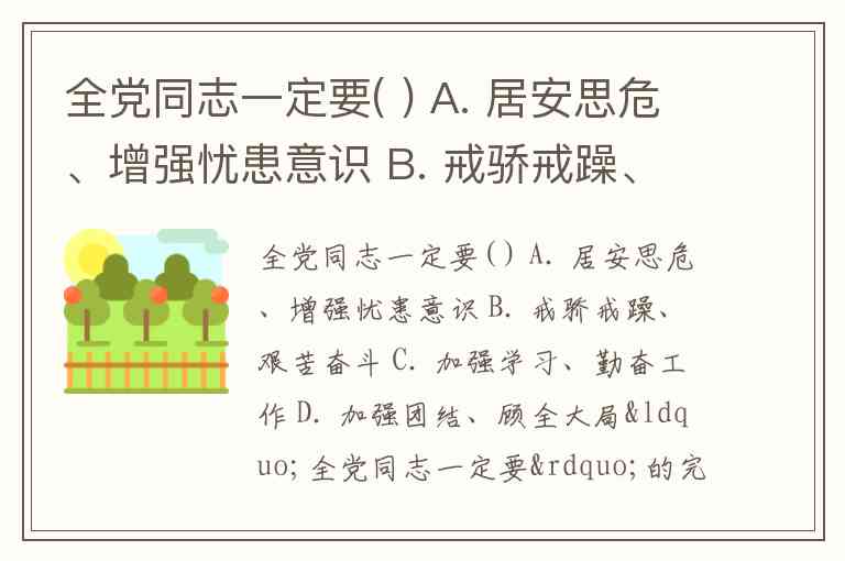 全党同志一定要( ) A. 居安思危、增强忧患意识 B. 戒骄戒躁、艰苦奋斗 C. 加强学习、勤奋工作 D. 加强团结、顾全大局