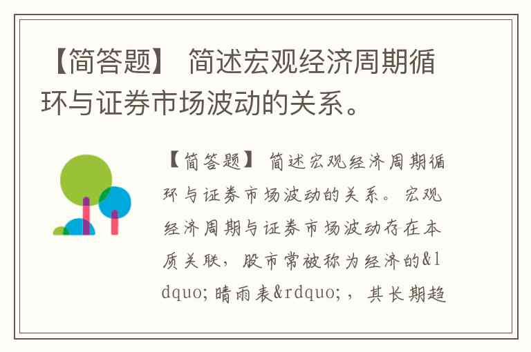 【简答题】 简述宏观经济周期循环与证券市场波动的关系。