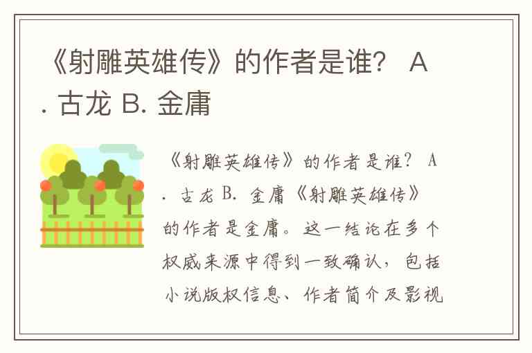 《射雕英雄传》的作者是谁? A. 古龙 B. 金庸