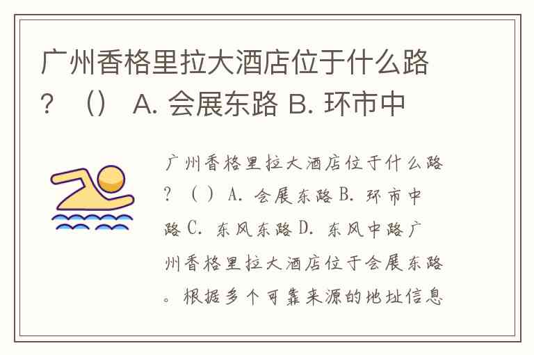 广州香格里拉大酒店位于会展东路。根据多个可靠来源的地址信息,该酒店的具体位置为广州市海珠区会展东路1号,紧邻琶洲会展中心,这一地址在不同时期的官方资料中均保持一致。尽管部分网页存在"重庆"或"衡阳"等无关城市名称的标注错误,但核心地址信息始终明确指向会展东路。因此,正确答案为 A. 会展东路。