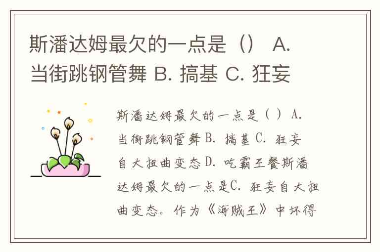 斯潘达姆最欠的一点是() A. 当街跳钢管舞 B. 搞基 C. 狂妄自大扭曲变态 D. 吃霸王餐