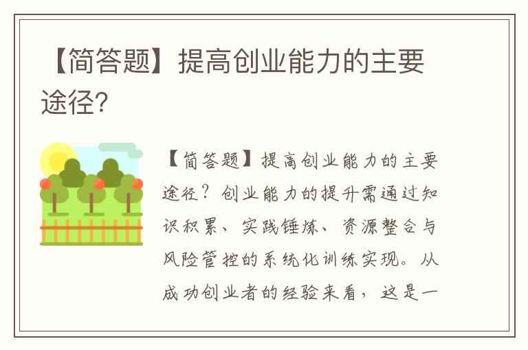 创业能力的提升需通过知识积累、实践锤炼、资源整合与风险管控的系统化训练实现。从成功创业者的经验来看,这是一个“学习-实践-复盘”的螺旋上升过程,而非单一技能的突破。