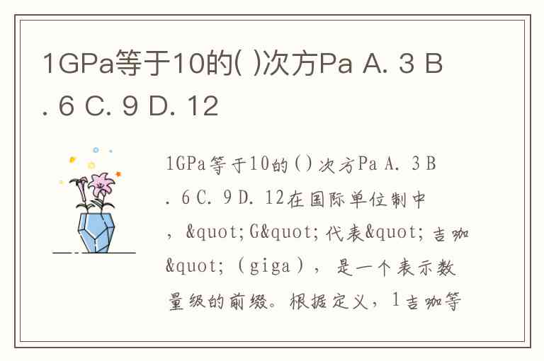 1GPa等于10的( )次方Pa A. 3 B. 6 C. 9 D. 12